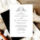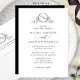 Convite de casamento elegante com delicado monograma de arte desenhado com noiva e iniciais de noiva. Cheio simples e limpo de elegância e graça. Frente em cor branca de fundo enquanto texto e monograma são pretos. De volta a preto elegante. Também disponível em branco. Opção para alterar as cores de fundo frontal e traseira para qualquer cor que você quiser, usando a "Ferramenta do Editor". Parte da nossa coleção "Elegance Minimal Black and White Monographic Wedding" com uma variedade de produtos de coordenação disponíveis. Visite a coleção inteira em: https://www.zazzle.com/collections/elegance_minimal_black_and_white_monogram_wedding-119677926842478970