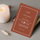 Estes maravilhosos convites modernos de casamento com um monograma laranja queimado têm um estilo simples de texto minimalista preto e branco com uma fronteira tradicional. Você pode personalizá-los adicionando um monograma ou suas iniciais.