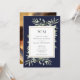 Com delicadas folhas de verde aquarela num fundo azul-marinho, este convite de casamento botânico elegante pode ser personalizado com as iniciais do seu monograma e informações especiais do dia do casamento e a sua foto especial no verso. Desenhado por Thisisnotme