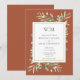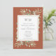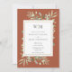 Com delicadas folhas de verde aquarela em um fundo de terracota, este convite de casamento botânico elegante pode ser personalizado com as iniciais do seu monograma e informações especiais do dia do casamento. Concebido por Thisisnotme©