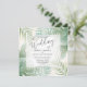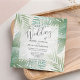 Design tropical elegante com monstera e palmeiras grandes. Ele incorpora uma delicada gama de verdes com um toque de ouro. Fácil de personalizar para que você possa realmente fazer deste um convite de casamento único