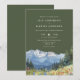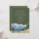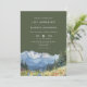 Este convite de casamento elegante em aquarela de cor verde-oliva com montanhas e flores silvestres pode ser personalizado com suas informações em tipografia sofisticada. Desenhado por Thisisnotme