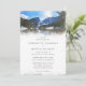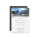 Convite de casamento de montanha d'água que inclui copos de montanha ao largo de laca com coníferas. Design de cartão perfeito para a festa de casamento de destino.