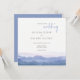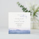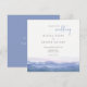 Convite de casamento com a paisagem da montanha Morning. Paisagem natural azul-suave. Silhuetas de montanhas e flores de dandelion. Concurso de Casamento de Pintagem de Aquarela. Coleção de Montanhas Roxas.