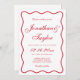 Torne o seu grande dia inesquecível com o nosso Convite para Casamento Vermelho e Rosa de Foto Ondulado Personalizado. Estes convites únicos de casamento misturam um estilo divertido e engraçado de convites de casamento com um tema de casamento encantador vermelho e rosa, perfeito para casais que procuram convites ecléticos de casamento. Para aqueles que buscam ideias de convites de casamento com fotos, esta design é ideal, oferecendo um "nod" para convites de casamento de Namorados e retro convites de casamento para uma celebração de destaque.