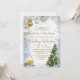 Condecorações de árvores Douradas e prateadas espumantes cercadas por folhagem festiva verde-salva com neve recém-caída numa terra maravilhosa de inverno.