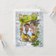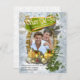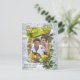 Decoração Dourada e prateada com espuma, uma foto-quadro dourada cercada por folhagem festiva verde-salva com neve recém-caída em uma terra maravilhosa de inverno com obrigados de usar a foto da minha sobrinha Tessa.