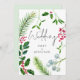 Casamento De Natal Com Folhagem De Inverno. Com o seu casamento festivo em mente, uma fronteira de sagrada, samambaias, amêndoas e bagas está na frente com o Casamento em um roteiro informal com seus nomes, e os detalhes estão na parte de trás. Personalize facilmente o texto editável e, se você quiser mudar o fundo verde no verso, poderá fazer isso através da opção personalizar mais.