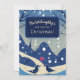 Celebre a sua família ou a sua festa de Natal de férias ou casamento com esta modelo fácil de atualizar. Basta preencher o nome, a idade, a data, a hora, a localização da parte e quaisquer notas RSVP ou outras informações. Mude de "Os Willoughby's estão hospedando o Natal!" para "Chandler e Addison estão se casando!" Disponível em muitos designs para cada ocasião. Esta design azul e branca apresenta uma cena de inverno com neve caindo sobre colinas e árvores sem folhas. Dois pássaros apaixonados se enfrentam. Um coração cor-de-rosa flutua acima e entre eles.