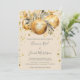 Dourado no convite para o casamento de Natal bege com um ornamento de ouro que diz 'Esta é a Estação para se Casar' um convite para um casamento elegante de Feriado.