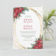 Elegante vermelho floral Poinsettia Natal Convite para Casamento Floral. O design de casamento de Férias apresenta um quadro circular geométrico dourado com speck dourados e Poinsettia de Natal Floral.