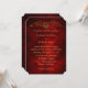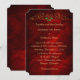 Este é um convite de casamento na moda, rico e bonito para a temporada de Férias. Um bonito pergaminho de ouro com um centro de morango vermelho e verde enfeita o topo do convite. Seu texto personalizado está em ouro abaixo da decoração de rolagem. As imagens e o texto são colocados sobre um fundo vermelho brilhante e rico, brilhante, que quase brilha! Muito elegante e festivo!