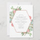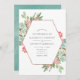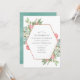 Convite de casamento de natal de coloração aquosa, de jolly jolly, com uma estrutura geométrica de rosa dourado, eucalipto, conchinho e pinheiro complementados por uma lavagem de cor aquática colorida da casa da moeda.