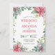 O design apresenta um delicado quadro floral de poinsettia aquosa na frente. Um convite perfeito para o seu casamento no inverno. Adicione detalhes do monograma e site de casamento no fundo.