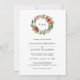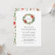 Este belo convite para o casamento de feriado apresenta elegantes flores vermelhas de aquarela com bagas ocas, pinecones, e verde arranjados em uma bela coroa com o monograma da noiva e do noivo. A parte traseira da placa inclui um padrão de correspondência química que pode ser facilmente apagado, se preferir. Localize itens correspondentes na Coleção de Natal Botânico de inverno Vermelho Feriado.