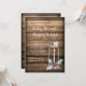 Este convite de casamento rústico é perfeito para um casamento de Natal. Apresenta uma antiga lanterna e vela com folhas e bagas ocas com um crachá cardíaco personalizado sobre um fundo de madeira de celeiro. Fácil de personalizar com suas próprias informações. Se você quiser este design em outro produto, envie um email para shutterbug600@yahoo.com
