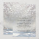 Convites de casamento rústico e elegante para o Natal, apresentando um cenário florestal branco congelado, uma sobreposição branca, luzes cintilantes e um modelo de casamento fácil de personalizar.