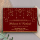 Convide seus convidados com este elegante convite para o casamento de Natal com belos Enfeites de natal contra um fundo vermelho escuro. Basta adicionar os detalhes do seu evento neste modelo fácil de usar para torná-lo um convite de tipo único. Sacudir a placa para revelar uma textura falsa de brilho dourado na parte traseira da placa.