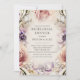 Púrpura e pincelada pincelada, cor-de-água rosa, floral com borboletas em um convite de janto de ensaio de casamento de cor creme.