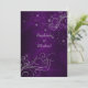 Este é um convite de casamento na moda, rico e bonito com os nomes da noiva e do noivo em prata, num elegante gradiente roxo real. Bonito espirais prateadas no topo e no fundo, e uma camada noturna estressada, terminam o convite. As costas prendem o texto do casamento em prata no mesmo fundo roxo. Muito bonito para casamentos de inverno ou outono, especialmente, mas memorável para qualquer estação. *Usamos o texto tradicional do casamento como exemplo, mas ele é facilmente alterado para qualquer coisa que você gostaria. Se precisar de ajuda com o seu texto preferido, por favor, não hesite em entrar em contato conosco através do nosso e-mail de loja. Estamos sempre felizes em ajudar!