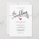Simples e moderno, mas elegante. Convites de casamento clássicos personalizados preto, branco e vermelho. Clássica caligrafia O CASAMENTO DE com um coração pequeno no meio. A fonte, o tamanho e a cor do texto podem ser alterados. Cartões fáceis de editar. A parte traseira do cartão está vermelha (alteração para corresponder ao esquema de cor do casamento - clique em 'personalizar mais'). Iniciais de noiva e noiva. Entre em contato com o designer para obter outras variações ou cores. Perfeito para o casamento do dia de os namorados!