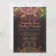 designs de convite de casamento únicos no estilo do alternativo: este convite à terra, hippie, no estilo "boho rustic" é feito com uma mistura de madeira vermelha escura de fundo e mandalas boêmicas douradas / caçador de sonhos. Com uma camada de luzes coloridas, este convite de casamento personalizado serviria àqueles que tinham um encontro noturno/noite.