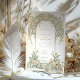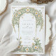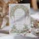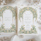 Este elegante convite de casamento apresenta um clássico design de Arte Nouveau adorado com belos marfim e margaridas verdes. A frente do cartão mostra padrões florais complexos entrelaçados com um trabalho de rolagem gracioso em tons de marfim e verde pastel macio. O design detalhado cria uma atmosfera eterno e romântica, perfeita para uma sofisticada celebração de casamento. O verso do convite continua o tema floral, destacando a data do casamento com um arranjo refinado de margaridas e folhas. Ideal para casais que buscam uma mistura de elegância tradicional e encanto artístico, esse convite incorpora a essência do romance e da natureza.
