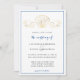 Este elegante convite de casamento costeiro apresenta uma concha de ouro na moda e ondas design com uma fronteira azul. O convite reverte para o padrão da célula de segurança dourada em fundo azul. Perfeito para praia, verão ou casamentos temáticos náuticos. Design ©Rosalind Moore, Design de Cherry Lane.