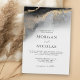 Com elegante opulência, este convite de casamento moderno e elegante tem um desenho assimétrico ao longo do topo, num moderno ouro shimmery e num padrão abstrato de marmoreado preto. O esquema de cores chic dá o tom para o seu casamento dos sonhos. O olhar é luxuoso, artístico e saboroso. Personalize o modelo de texto com os detalhes do casamento.