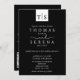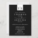 Um moderno design clássico preto-e-branco, polido, que exumenta uma sensação de timidez e sofisticação. Adicione o URL do seu site de casamento no verso do cartão que atualizará o código QR (ou exclua se não for necessário). Os convidados podem simplesmente digitalizar o código QR para acessar uma grande quantidade de informações de todos os detalhes e atualizações do seu casamento, etc. Um convite conveniente e econômico, sem a necessidade de adicionar gabinetes RSVP separados. Clique em personalizar/personalizar para edição adicional.