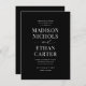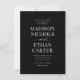 Este convite de casamento elegante e moderno apresenta um roteiro de caligrafia único, emparelhado com na moda. O esquema de cores preto e branco é perfeito para qualquer evento, formal ou casual.