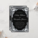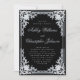 Este elegante convite de casamento preto e prateado com um ar vintage tem um falso quadro ornamentado de folha de alumínio prateado com decorações elegantes de cinzas de prata barroca num fundo preto. Os nomes da noiva e do noivo são escritos em um roteiro caligráfico elegante. Todo texto pode ser personalizado e tem uma cor de cinza de prata semelhante à falso quadro prateado. A vintage, falso quadro prateado ornamentado é baseada em um antigo enlace francês de cobrir de livros, de Georges Mercier (1885-1939) - Madame de Maupin por Theophile Gautier, edição 1911, agora no dominio público.