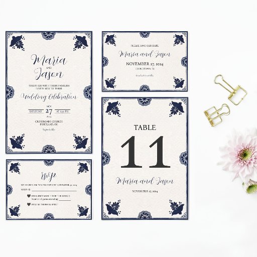 Convites Casamento de Otomi Simple Fiesta Azul Mexicano