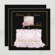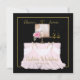 Convite Elegante para Casamento de Ouros, preto e ouro, com um belo bolo em um stand e mesa como peça central, um bolo caindo 50 em ouro e os nomes do casal feliz de ambos os lados, e dois copos de champanhe e bolhas. Ao contrário, todos os detalhes do partido. Personalize facilmente as palavras de ambos os lados com a sua.