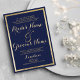 Elegante na moda azul moderno e dourado convite de casamento. Este luxo de ouro e festa de casamento azul é perfeito para qualquer evento clássico e sofisticado. Este design é perfeito para um evento de tendências e na moda. Personalize este design com sua mensagem e informações personalizadas. Todas as designs são impressas.