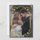 O convite de casamento para fotos na moda modernas, chamado azul real com ornamentado de moldura de ouro, com efeito de tinta dourada (o ouro é um efeito digital, não uma folha real!) e a caligrafia moderna branca. Clássico e elegante, simples e moderno convite.