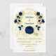 Flores azuis e brancas-marinhos românticas com folhas de ouro convite de casamento botânico Os detalhes da brilha são simulados. É adequado para casamento e festas de noivado.