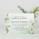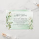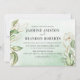 Convites de casamento de eucalipto trendy com um fundo de lavagem de aquarela verde chic, folhagem botânica verde exuberante elegante, detalhes em dourado e um modelo de texto de casamento moderno que é fácil de personalizar.