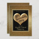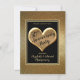 Convite de Casamento de Ouro do Festa de 50 Anos. Convide a família e os amigos para uma Celebração de Casamento de Ouros do Partido dos 50 anos de casal especial. Este cartão de convite é desenhado com um coração dourado brilhante com o texto: 50º Festa do Aniversário e nomes dos casais na parte frontal, sobre um fundo preto com quadro colorido de ouro. O verso inclui o texto: Data do evento, Hora, Local e Contato RSVP. em um plano de fundo preto com quadro dourado. Para personalizar simplesmente insira seus detalhes em nosso modelo fácil, substituindo o texto de exemplo. Nota: este convite está disponível no impressão e no download.