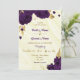 elegante luxo flores roxas reais com algumas folhas de ouro contra o convite de casamento de fundo de mármore Os detalhes de brilho são simulados
