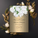 Este bonito anúncio de casamento floral de ouro apresenta uma base metálica de ouro pálido/bronze, com um belo grupo de rosas brancas interligadas com o hálito do bebê no topo, lembrando um buquê de noiva. Nosso convite para o "Casamento de Buquê de Glamor e Branca" é um convite elegante e botânico na moda, que seria muito adequado para um casamento ao ar livre, ou para uma celebração de casamento mais sofisticada e formal. As tonalidades de ouro metálico, moderadas mas muito glamourosas, da cor base do cartão e do design floral se complementam, resultando em um efeito visualmente agradável e harmonioso. O reverso da carta apresenta o mesmo gradiente dourado, com um segundo punhado de rosas brancas gloriosas no meio.