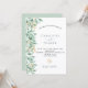 Um fundo branco-quic decorado com prigos botânicos de ouro verdes e falsos, florais verdes e folhagem. Personalize e adicione seus nomes e detalhes do casamento. Letras pretas e verdes. Verso: cor verde do fundo.