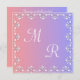 Um convite de casamento decorativo, cor-de-rosa e azul, que pode ser personalizado com seus próprios monogramas e iniciais. Com um ornamentado, uma borda branca com decorações de diamante, esta carta de casamento verdadeiramente elegante vai impressionar todos que têm a sorte de recebê-la.