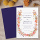Convite de Casamento Elegante de Outono Boho Coroa de Flores Selvagens em azul-marinho e branco