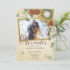 Recorte e posicione facilmente sua foto neste convite de casamento de outono. As flores de protea e folhas de eucalipto se coordenam lindamente com envelopes correspondentes, etiquetas de endereço de devolução e suprimentos para festas. Os cartões são fáceis de personalizar e há opções de tamanho disponíveis. Perfeito para cores douradas e laranja queimado, casamento de outubro ou casamento de novembro.