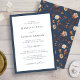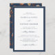 Convite de Casamento de outono de marinho. Este elegante convite para o casamento tem um belo roteiro na frente e um padrão de queda branca nas costas com a cor d'água queimada manualmente e as folhas terracotta, dahlias creme e bege, e belas rosas coloridas à ferrugem em fundo de marinho. Localizar itens correspondentes na Coleção Romance de outono do Marinho.