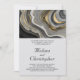 Um convite de casamento moderno para na moda. Com um design abstrato com uma imagem que se parece com um geode agado. espirais Douradas, cinzas, brancas e pretas formando ondas de cor elegantes. Perfeito para transmitir um ar de classe e elegância.