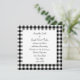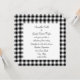 O padrão de gingham preto e branco borda um simples convite para o casamento. Escolha "personalizar" para alterar o tamanho e o estilo da fonte ou alterar o texto.