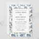 Convites Casamento de Padrão Floral Azul Elegante Dusty