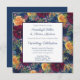 O design de cores brilhantes é um padrão de borda floral multicolorido com base azul marinho e modelos de casamento em uma caixa quadrada delimitada em azul marinho escuro.